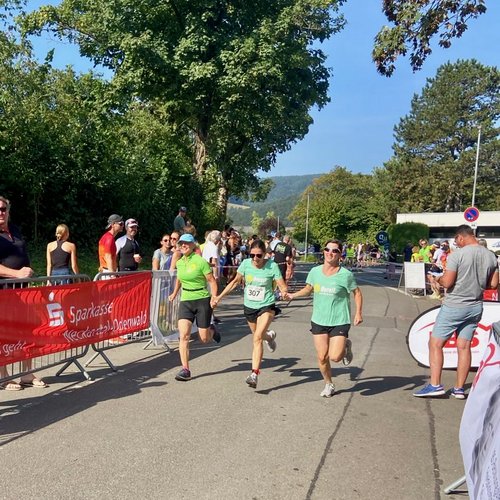Ein eindrucksvoller und anstrengender Doppel-Wahlkampf (Kommunalwahl und Bürgermeisterwahlkampf von Hermino) hat die Neckargemünder dieses Jahr ganz schön auf Trab gehalten. Jürgen ist dieses Jahr in den Bundestag nachgerückt und pendelt zwischen Berlin und Wiesloch hin und her, lässt keine Sitzung und keine Gelegenheit aus, um, wie Hermino, für uns alle grüne Politik zu verwirklichen. Gabi und Marion halten als Gemeinderätinnen in Wiesloch die grüne Fahne hoch, und Heike hatte eine Knieprellung im Juli, die zum Glück einigermaßen verheilt ist. Keine ganz so günstigen Voraussetzungen, und jünger sind wir in den letzten 2 Jahren auch nicht geworden. Dazu kommt, dass es bei der Bewertung der Zeiten bei den Staffeln keine Ausnahmen gibt. Egal welchen Geschlechts oder welchen Alters, einzig die Zeit und das Überschreiten der Ziellinie entscheiden über Treppchen-Platz.