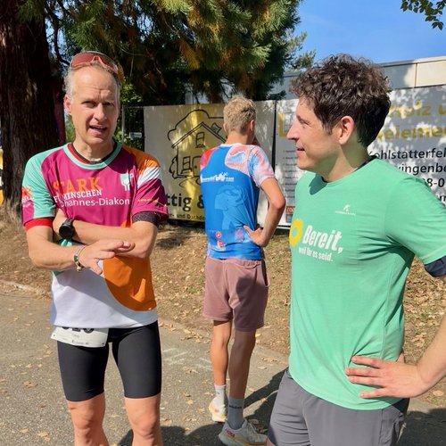 Zum zweiten Mal sind wie 2022 unsere beiden Staffel-Teams in Eberbach zum Jedermann- und Sprinttriathlon eingetroffen. Wie vor 2 Jahren haben sich von den Mitgliedern des Green Teams des Kreisverbands Odenwald-Kraichgau 3 Jungs und 3 Mädels zusammengefunden, nun ja, eher Herren und Damen angesichts des nicht mehr ganz jugendlichen Alters. Aber man/frau ist ja schließlich so jung, wie er/sie sich fühlt, und das reicht in diesem Fall für einen Triathlon allemal aus. Noch dazu, nachdem unser großes Vorbild, ein 86-Jähriger, fester Bestandteil des Starter*innenfelds ist, der nur einmal vor 3 Jahren einen Triathlon in Eberbach auslassen musste, weil er da auf Bergtour war (!). Mit 86 noch Triathlon: Das ist doch mal ein Ziel.