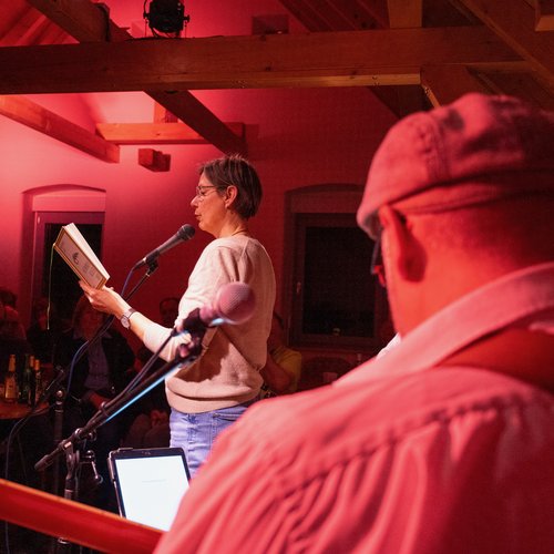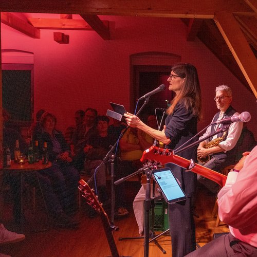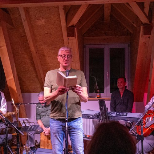 Die klug ausgewählten Texte, vorgetragen von Mitgliedern und Freunden des Wieslocher Ortsverbands der GRÜNEN, bewegten sich zwischen humorvollen Einlagen aus der Feder Heinz Erhardts und sensationell vorgetragenem, selbstverfasstem Poetry Slam. Sie führten quer durch die literarische Landschaft und brachten das Publikum, das nicht nur aus dem klassischen grünen Wählerkreis stammte, zum Nachdenken und Staunen. Selbst Jürgen Kretz, vielbeschäftigter Bundestagsabgeordneter der GRÜNEN, ließ es sich nicht nehmen, extra aus dem vom Vorwahlkampf geprägten Berlin anzureisen und mehrere zuversichtliche Texte beizusteuern.
