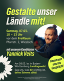 Gestalte unser Ländle mit. Vor Ort kannst mit uns ins Gespräch kommen und uns das, was dir wichtig ist, schriftlich mitgeben. Dieses Mal mit unserem Wahlkreis-Direktkandidaten!