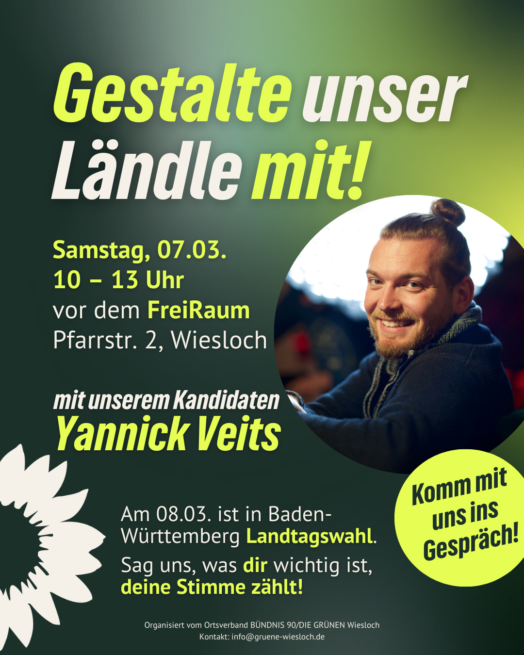 Am Samstag hast du die Gelegenheit dazu. Schreib es auf einen Zettel oder komm mit uns ins Gespräch. Wir können dir nicht versprechen, alles umzusetzen. Klar, wenn wir das könnten, wären wir eine gute Fee aus einem Märchen. Aber wir versprechen dir, diese Gedanken ernst zu nehmen und unserem Landtagskandidaten auf den Weg nach Stuttgart mitzugeben. Und der ist dieses Mal direkt vor Ort! Du kannst also persönlich mit ihm ins Gespräch kommen!